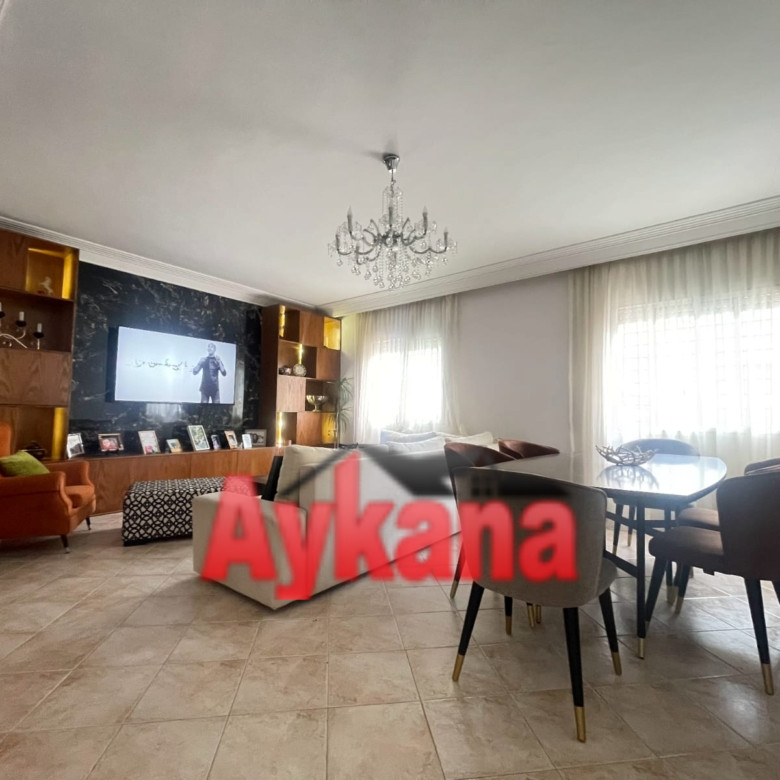 شقة مواجهة للشرق والغرب بمساحة 170 متر مربع في الطابق الأول بدون مصعد في مسكن مغلق وآمن على بعد 600 متر من الشاطئ.