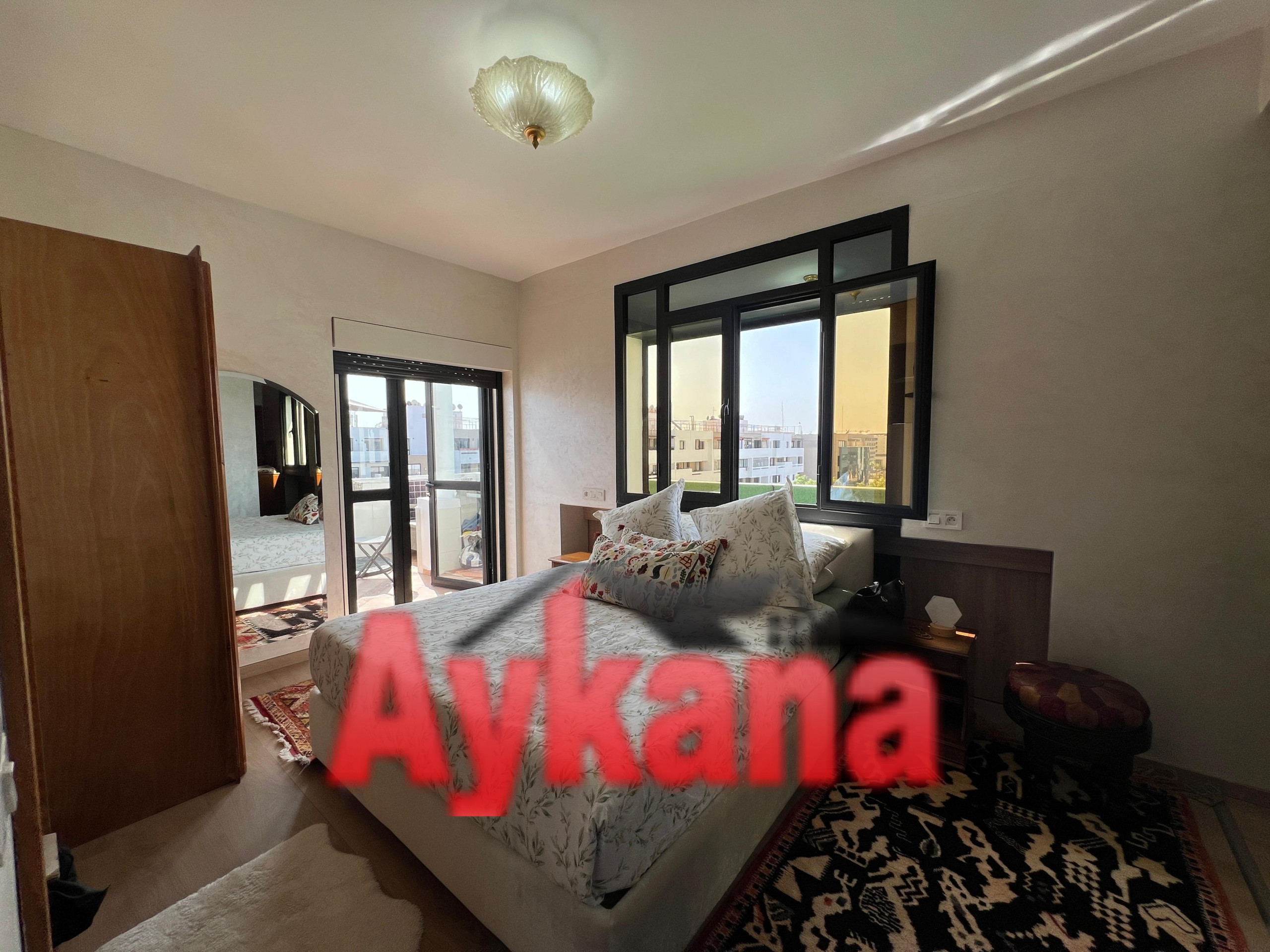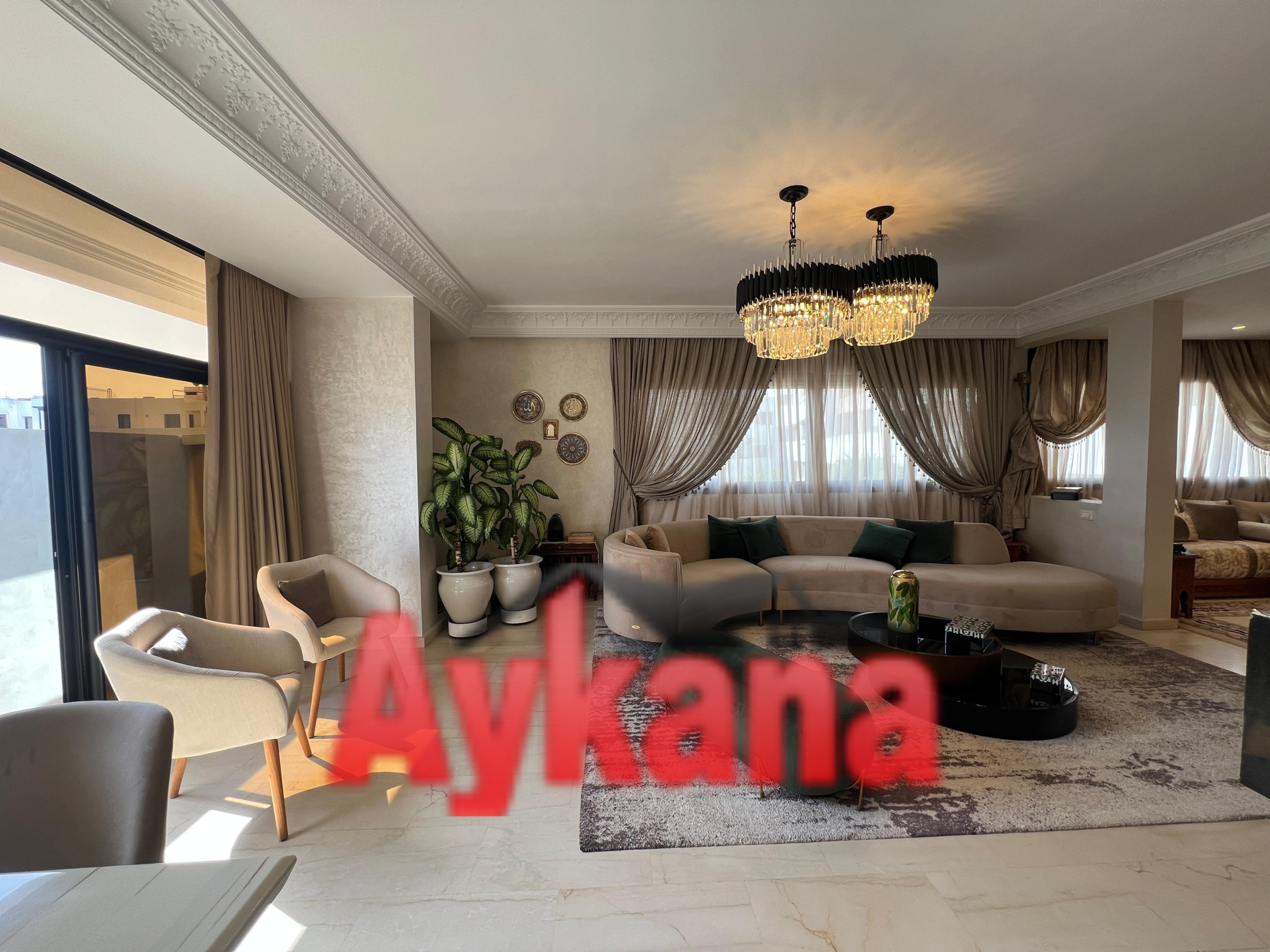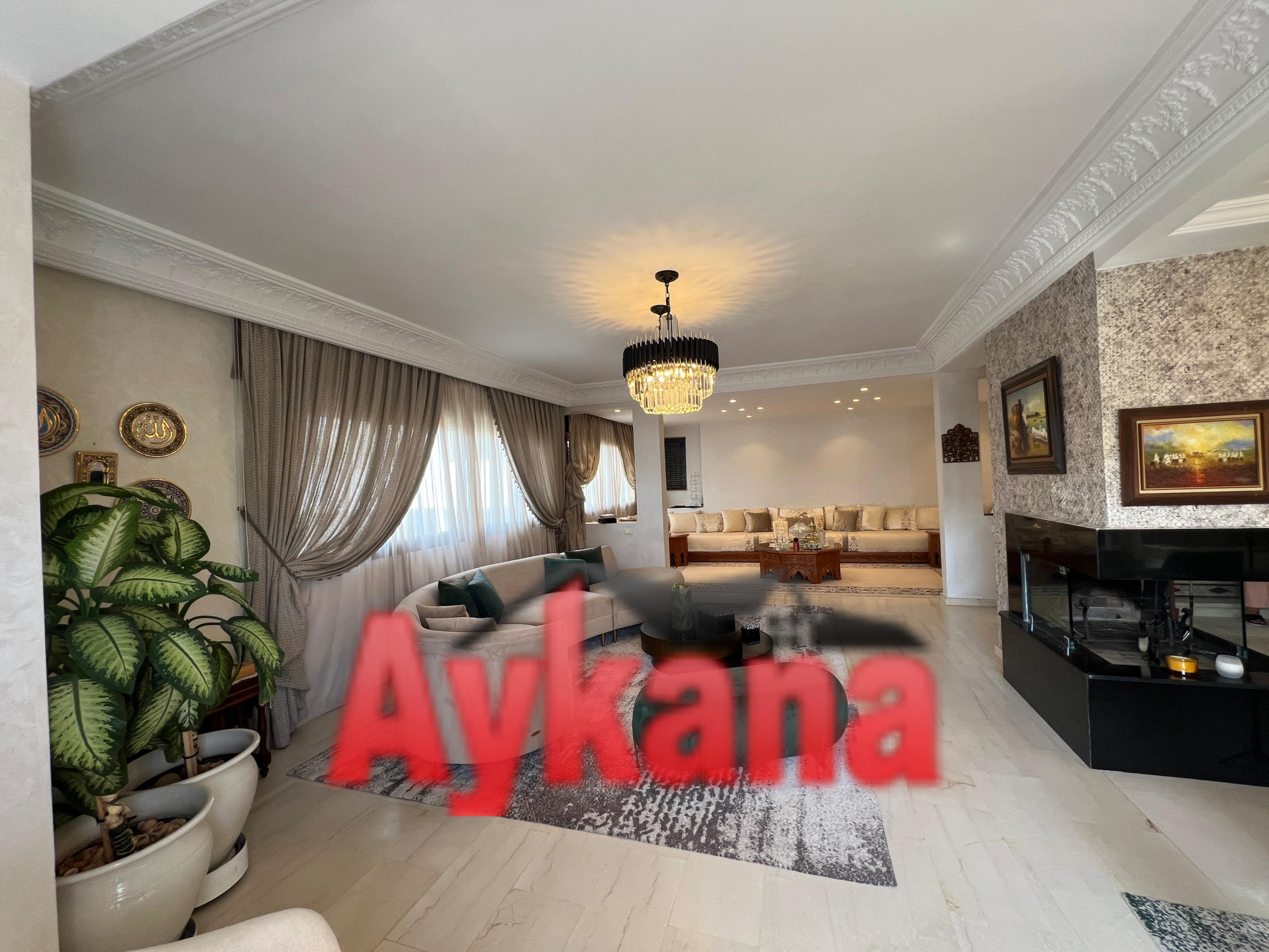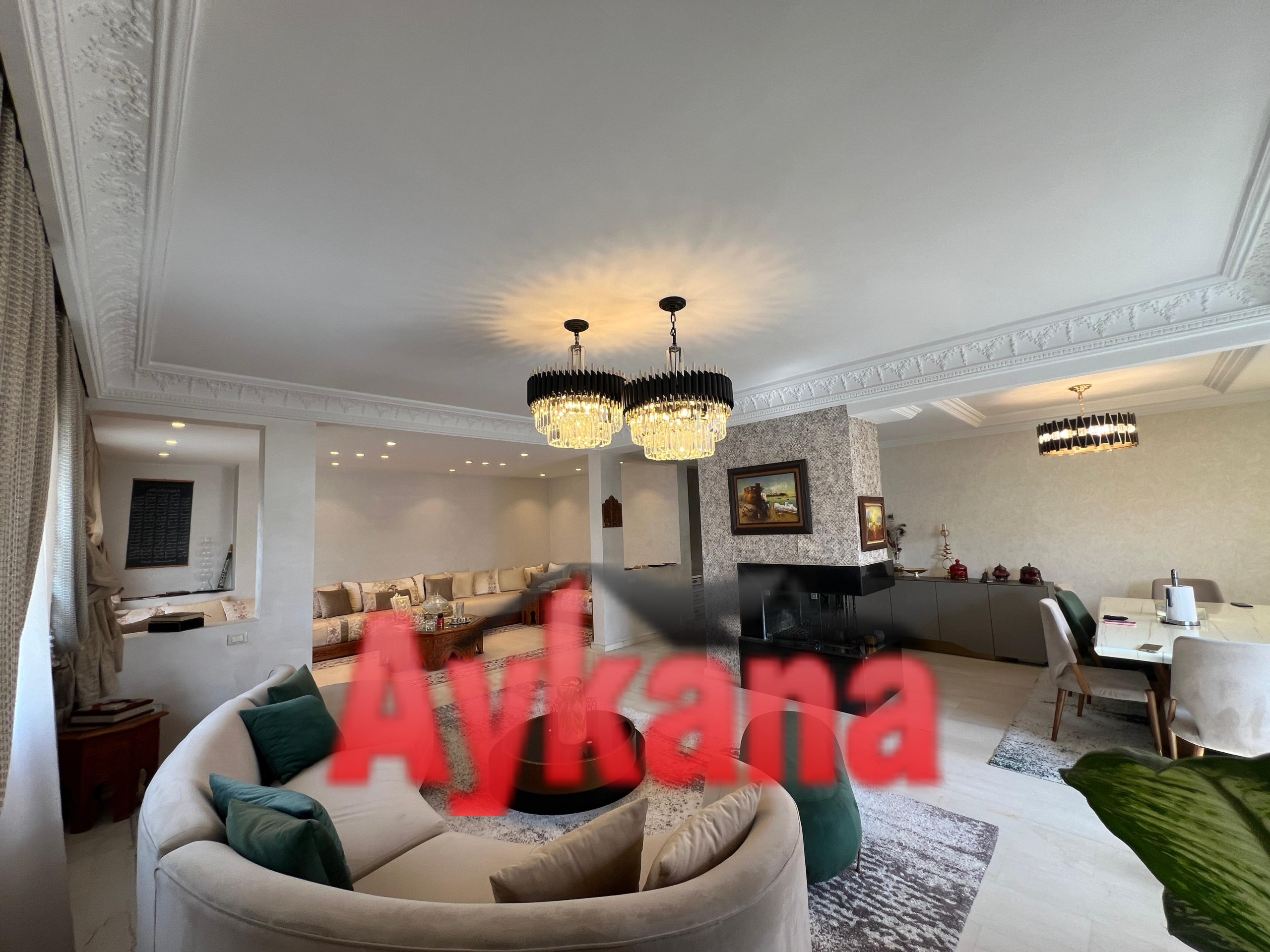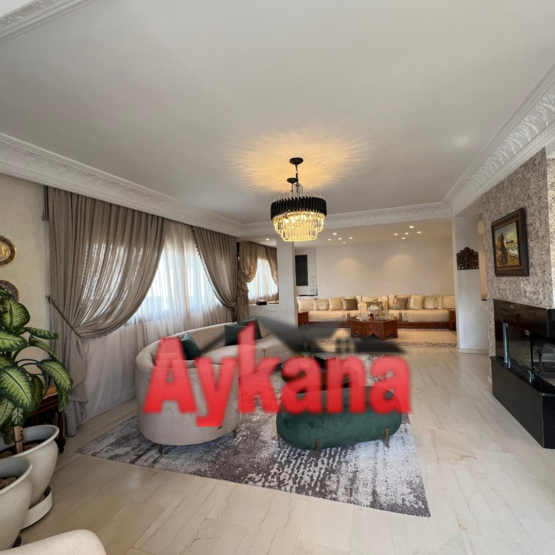 AYKANA Real Estate offers you in exclusivity A sumptuous 205m² duplex located in the heart of the prestigious Mahaj Riad complex in Hay RiadThis refined property combines elegance and functionality with his 3 bedrooms, her double living room with fireplace and its high-end finishes.