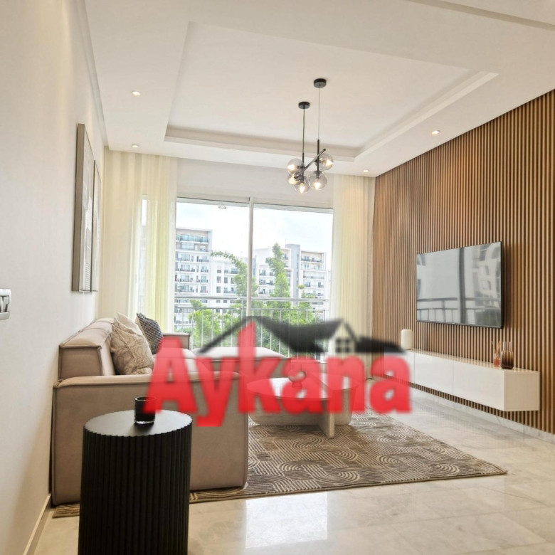Appartement meublé à louer à Hay Riyad – Prestigia | 99 m² | Terrasse | Garage